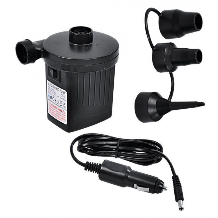 Электрический насос—идеальное решение для надувания и сдувания матрасов , лодок , надувных кругов и ковриков для кемпинга . Он портативен , поставляется с устройством для прикуривания от автомобиля и 3 насадками для удобства использования. С давлением 4500 Па и производительностью 400 л / мин , этот насос делает надувание и сдувание простым и быстрым. Этот электрический насос подходит для лодок из пвх , одноместных лодок , бассейнов , надувной мебели , матрасов и мячей . Выполняйте работу быстро с помощью этого универсального электрического насоса ! Комплектация: