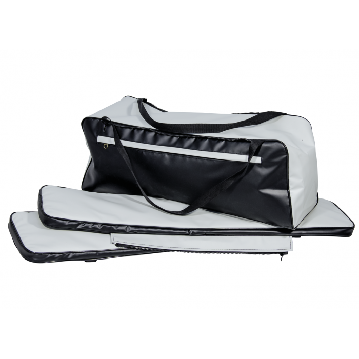 Мягкие накладки на сиденья, существенно, повышают уровень комфорта при длительном пребывании в лодки. Изготовляются компанией "Мастер лодок" из ткани ПВХ и многослойного изолона с "нулевым" влагопоглощением. Закрепляются на сиденье ремнями-стропами с фиксаторами "крыло". Комплект состоит из двух накладок и оснащен съемной сумкой для хранения снастей. Сумка с ручками для переноски имеет два отдела - основной, объемом 25 литров, и малый для хранения мелочей. Оба отдела оборудованы застежками на молнии с защитой от брызг.