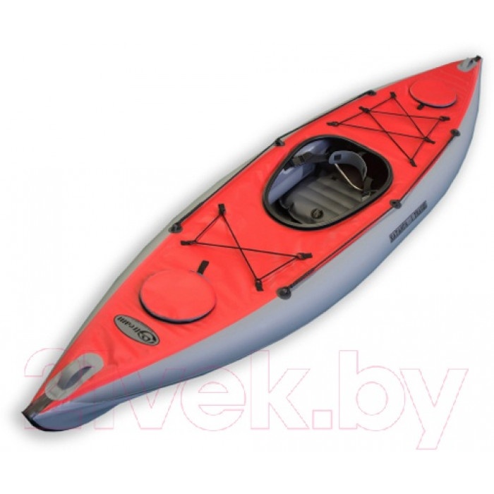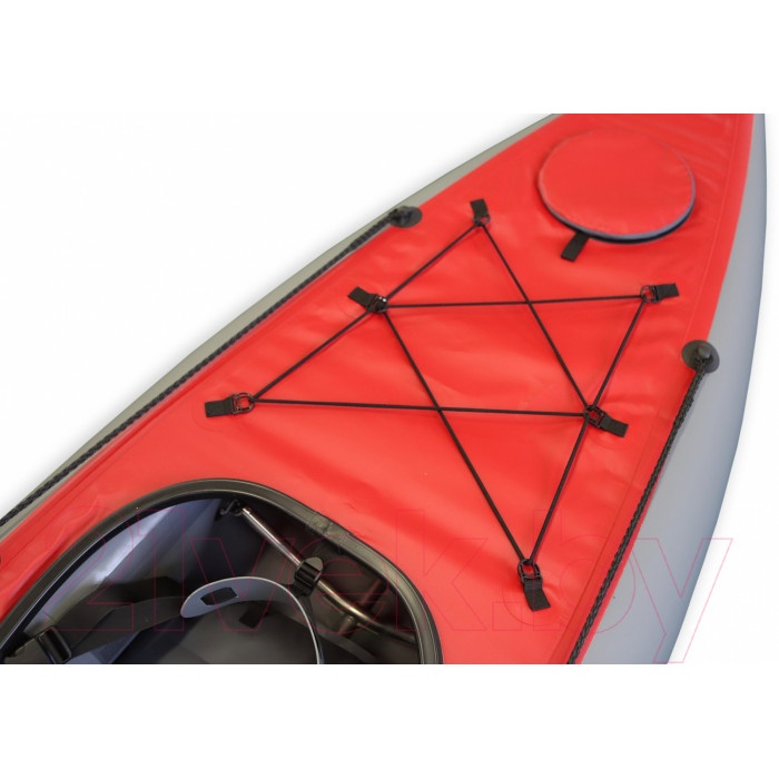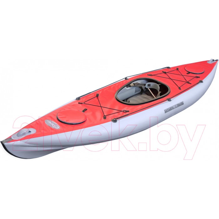 Байдарка предназначена для путешествий по озерам и рекам, для выездов на рыбалку и охоту, а так же сплаву по рекам с порогами 1-2 категории сложности. Соотношение длины и ширины позволяют уверено держать байдарку на курсе. Обитаемость достаточная для обеспечения определенного комфорта даже в длительном автономном походе.Каркасно-надувная байдарка «Хатанга-Travel» предназначена для отдыха на спокойной воде. Водоемы на которых можно использовать судно — реки, озера, водохранилища, море. Внутренний объем судна позволяет разместить достаточно большое количество багажа, а надувные сидения-подушки и жесткие спинки обеспечивают экипажу удобную посадку. Байдарка обладает хорошей маневренностью и скоростью. Дополнительные грузовые отсеки позволяют упростить сборку/разборку судна, а так же разместить багаж в носовой и кормовой частях байдарки.Каркас байдарки прост и имеет небольшое количество элементов: разборный кильсон, состоящий из прямых труб и штевней, а так же поперечных шпангоутов и распорок. Место соединения прямых труб фиксируется муфтой с кнопкой-фиксатором. Шпангоуты и распорки вставляются в опоры, расположенные на баллонах и фиксируются шпильками. Ручки, расположенные на корме и носу, позволяют осуществлять переноску байдарки.Как и все «Хатанги» левый и правый баллон судна разделены перегородкой, что позволяет удерживать байдарку на плаву, не давая ей крен на один из бортов в случае повреждения. Дополнительным усилением дна является защитная черная лента, проходящая по центру, приваренная на сварочном оборудовании. Благодаря кильсону, байдарка имеет килеватость, что обеспечивают курсовую устойчивость, а обводы байдарки позволяют развивать хорошую скорость.(В комплектацию входят: заглушки грузового отсека 2 шт., резинки для ручной клади 2 шт., соединительная муфта (манжета)).
