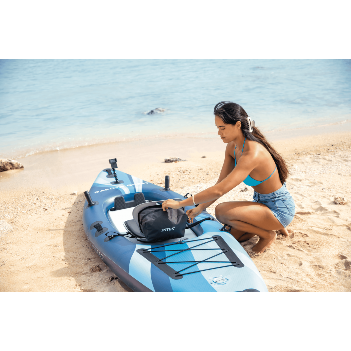 Надувная байдарка Intex 68245 имеет в комплекте все необходимое, есть алюминиевое весло, которое отличается легкостью и прочностью, а также сумка-переноска, упрощающая транспортировку и хранение. Благодаря своей компактности в сложенном виде, такая байдарка не займет много места и легко поместится в багажник автомобиля.
