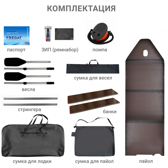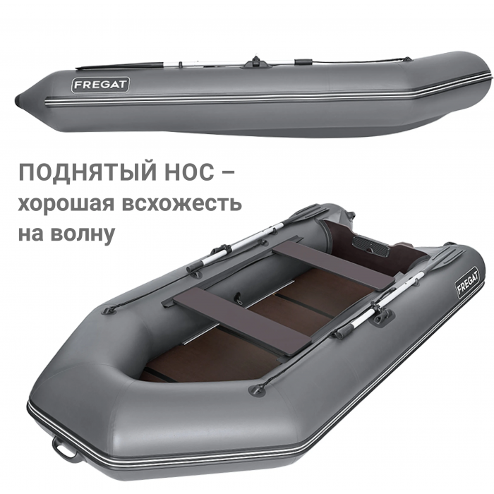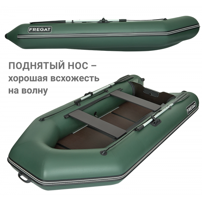 Фрегат 300 EK — это килевая надувная моторная лодка из ПВХ длиной 3,00 м, рассчитанная на 4-х пассажиров, под мотор до 8 л. с. Это легкая, компактная, надёжная, быстрая и хорошо управляемая лодка с жестко вклеенным транцем. Предназначена для рыбалки, охоты и активного отдыха на воде. В отличие от лодок Фрегат 280 Е, 300 Е эта модель выпускается с надувным килем, приклеенным к днищу, поверх которого укладывается жесткий складной пайол. Комплектация и упаковка: Лодка, весла, пайол, упаковочные сумки, паспорт, ножная помпа (насос), ремкомплект. Транспортировка проста и удобна — в сложенном состоянии лодка перевозится в двух упаковочных сумках.