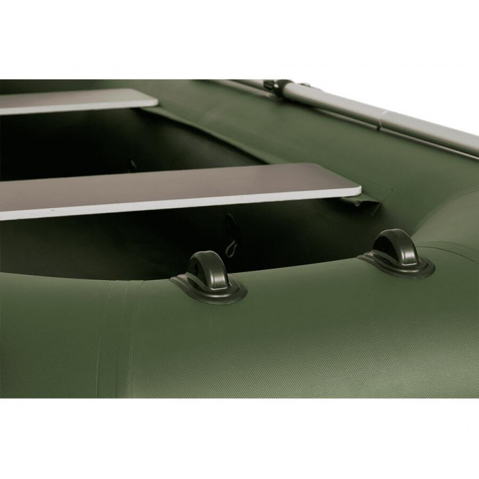 Лодка полностью сварена. Клей используется только для приклеивания фурнитуры. Баллон лодки сконструирован таким образом, что он гарантирует абсолютную надежность и безопасность при пребывании на воде. Швы лодки соединены методом горячей сварки, что существенно повышает их прочность, надежность и делает лодку экологически безопасной для окружающей среды. Баллон разделен перегородками на 2 независимых отсека, при этом перегородки находятся под поворотными уключинами, поэтому даже в случае повреждения одного из отсеков сохраняется возможность эффективно работать веслами. В комплекте: лодка, весла, сумка-рюкзак, паспорт, ножная помпа (насос), ремкомплект.