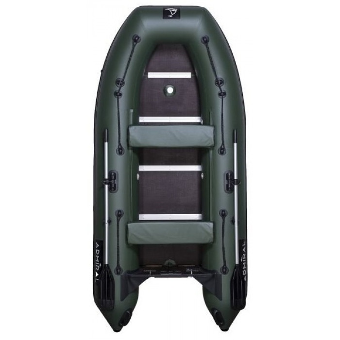 Модель Адмирал 305 Classic оборудована фанерным пайольным дном (9 мм), изготовленным из специальной ламинированной водостойкой фанеры. Для соединения секций используется наиболее популярный широкий профиль Шип-паз, обеспечивающий жесткость корпуса, что очень важно для рыбака и охотника. Лодка имеет кокпит шириной 65 см, изготовлена из ПВХ плотностью на 850 г./кв.м. При производстве используется 5-тислойная ткань ПВХ ведущиъ европейских производителей (Heytex, Mehler, Германия). Швы лодки проклеены лентами ткани ПВХ клеем Texacol (Италия). По кильсону имеется усиление лентой 6 см. Вес "шкуры" - 24 кг., вес всего комплекта 37 кг. Встроенный килеватый V-образный транец изготовлен из влагостойкой фанеры толщиной 18 мм, усилен накладкой из армированного полиамида. На лодке могут устанавливаться лодочные моторы до 8 лошадиных сил. На носу и конусах баллоновимеются ручки для переноски лодки. Кроме того лодка оснащена ручкой водителя. Сиденья лодки выполнены из влагостойкой ламинированной фанеры и крепятся на лик-трос лик-паз. Размер сиденья 80*20*1,8 см. Комплектация: