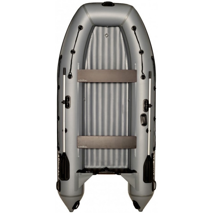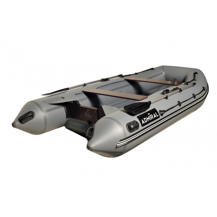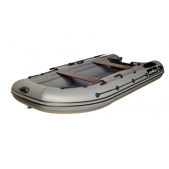 Модель Адмирал 350 НДНД оборудована надувным дном, не уступающим по жесткости стандартному фанерному пайолу. Лодка не дельфинирует и легко выходит в режим глиссирования. Благодаря конструкции и небольшому весу, лодку успешно используют с мотором минимальной мощности. Обладателей моторов 10-18 л.с., лодка порадует своими скоростными характеристиками. Лодка имеет умеренно килеватые обводы дна. Это исключает переваливание с борта на борт даже при малой загрузке, также уменьшает парусность судна. Лодка имеет кокпит шириной 71 см, изготовлена из ПВХ плотностью на баллонах 900 г./кв.м., на дне 1100 г./кв.м. При производстве используется 5-тислойная ткань ПВХ ведущиъ европейских производителей (Heytex, Mehler, Германия). Швы лодки проклеены лентами ткани ПВХ клеем Texacol (Италия). Вес "шкуры" - 32 кг., вес всего комплекта 45 кг. Плотность ПВХ баллона - 900 гр/кв.метр, днища - 1100 гр/кв.метр Встроенный транец изготовлен из влагостойкой фанеры толщиной 27 мм, а также усилен накладкой (для уменьшения износа), имеется сливной клапан. На лодке могут устанавливаться лодочные моторы до 18 лошадиных сил. Транцевый интерцептор - пластик твёрдый оклеен ПВХ. На носу и концевиках имеются ручки для переноски лодки. Сиденья лодки выполнены из влагостойкой ламинированной фанеры и крепятся на лик-трос лик-паз. Размер сиденья 95*20*1,8 см. Комплектация:
