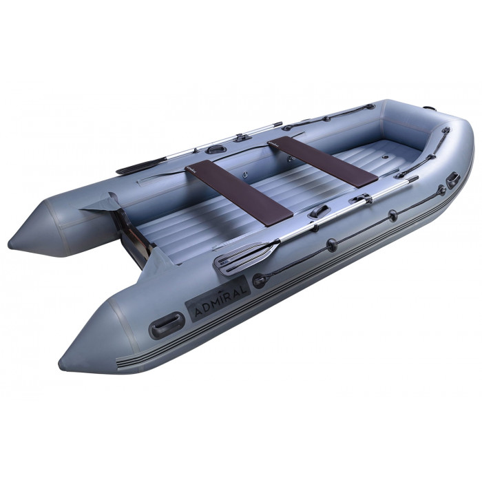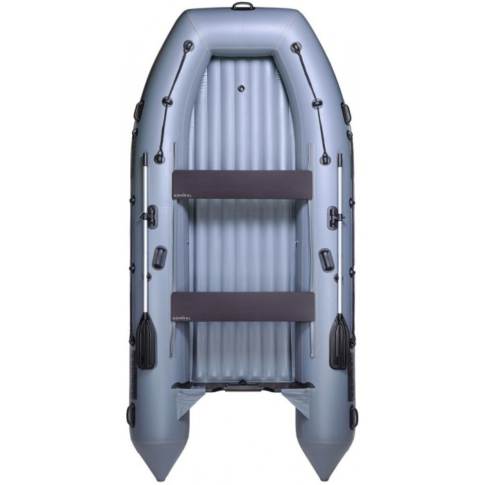 Предназначенная для использования в паре с мотором мощностью до 25 л.с., модель Адмирал 410 НДНД является лодкой с повышенными мореходными характеристиками – выраженный киль позволяет легко взбираться на волну и переходить в режим глиссирования даже с 5-сильным мотором. Это не просто лодка – это полноценное компактное судно, на котором комфортно выезжать на охоту и рыбалку или отдыхать на малых водоемах небольшой компанией. Лодка имеет кокпит шириной 90 см, изготовлена из ПВХ плотностью на баллонах 1050 г./кв.м., на дне 1200 г./кв.м. При производстве используется 5-тислойная ткань ПВХ ведущиъ европейских производителей (Heytex, Mehler, Германия). Швы лодки проклеены лентами ткани ПВХ клеем Texacol (Италия). Встроенный транец изготовлен из влагостойкой фанеры толщиной 27 мм, а также усилен накладкой (для уменьшения износа), имеется сливной клапан. На лодке могут устанавливаться лодочные моторы до 25 лошадиных сил. Транцевый интерцептор - пластик твёрдый оклеен ПВХ. Сиденья лодки выполнены из влагостойкой ламинированной фанеры и крепятся на лик-трос лик-паз. Размер сиденья 115*24*1,8 см. Комплектация: