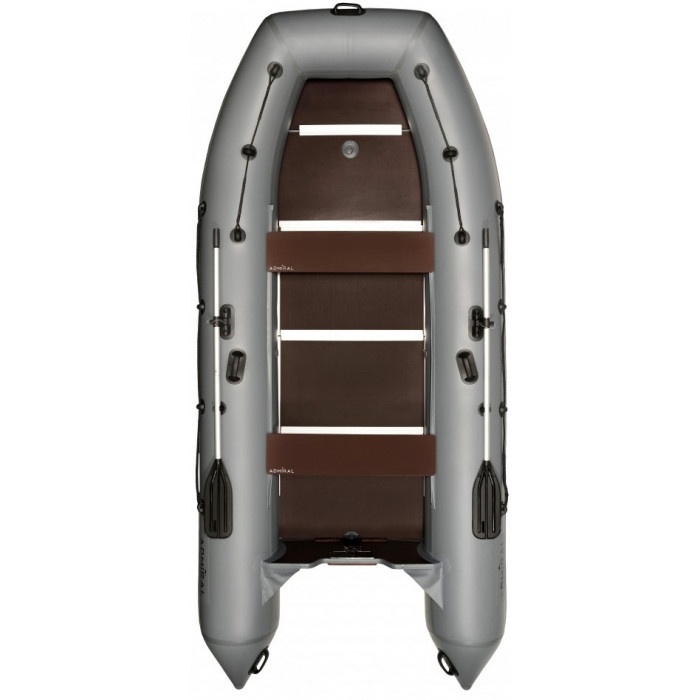 Адмирал 430 относится к серии лодок повышенной мореходности, эти лодки спроектированы для профессиональных рыбаков и охотников. Большая грузоподъемность и просторный кокпит позволяют использовать лодку для дальних водных переходов и тяжёлых работ на воде. Увеличенные диаметр баллона (55 см.) и размеры кокпита (320см*95см) позволят Вам чувствовать себя уверенно на воде. На лодке возможно использовать мотор до 40 л.с. При производстве используется 5-тислойная ткань ПВХ плотностью 1200 г./кв.м. ведущих европейских производителей (Heytex, Mehler, Германия). По кильсону имеется усиление лентой 6 см. Вес "шкуры" - 60 кг., вес всего комплекта 100 кг. Встроенный транец изготовлен из влагостойкой фанеры толщиной 35 мм, усилен накладкой из армированного полиамида. На носу и конусах баллонов имеются ручки для переноски лодки. Кроме того лодка оснащена ручкой водителя. Сиденья лодки выполнены из влагостойкой ламинированной фанеры и крепятся на лик-трос лик-паз. Размер сиденья 110*24 см. Комплектация: