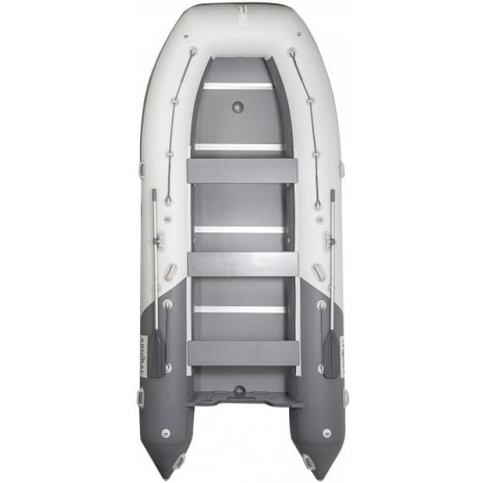 Адмирал 520 относится к серии лодок повышенной мореходности, эти лодки спроектированы для профессиональных рыбаков и охотников. Большая грузоподъемность и просторный кокпит позволяют использовать лодку для дальних водных переходов и тяжёлых работ на воде. Увеличенные диаметр баллона (60 см.) и размеры кокпита (370см*98см) позволят Вам чувствовать себя уверенно на воде. На лодке возможно использовать мотор до 50 л.с. При производстве используется 5-тислойная ткань ПВХ плотностью 1200 г./кв.м. ведущих европейских производителей (Heytex, Mehler, Германия). По кильсону имеется усиление лентой 6 см. Вес "шкуры" - 69 кг., вес всего комплекта 115 кг. Встроенный транец изготовлен из влагостойкой фанеры толщиной 35 мм, усилен накладкой из армированного полиамида. На носу и конусах баллонов имеются ручки для переноски лодки. Кроме того лодка оснащена ручкой водителя. Сиденья лодки выполнены из влагостойкой ламинированной фанеры и крепятся на лик-трос лик-паз. Размер сиденья 115*30*1.8 см. Комплектация: