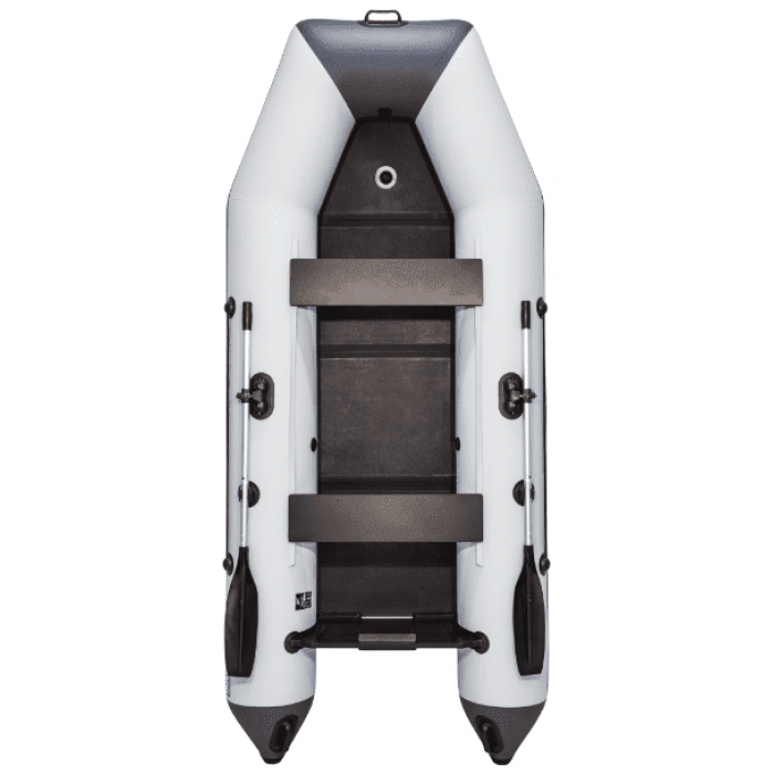 Надувная лодка имеет жестко вклеенный транец из водостойкой многослойной фанеры. Торцы транца защищены пластиковой окантовкой. В месте крепления двигателя предусмотрены дополнительные накладки для уменьшения износа.