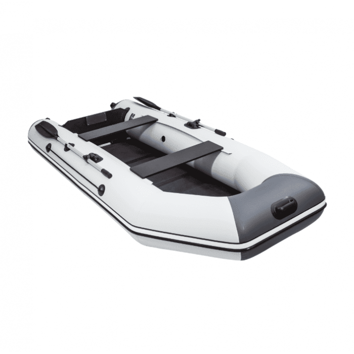 Лодка вмещает 3 человека + снаряжение. Материал лодки устойчив к воздействию горюче-смазочных материалов (бензина, масла), ультрафиолетовых лучей и механических нагрузок. Диаметр баллонов лодки 40 см, 3 герметичных отсека. Лодка имеет натяжное днище.