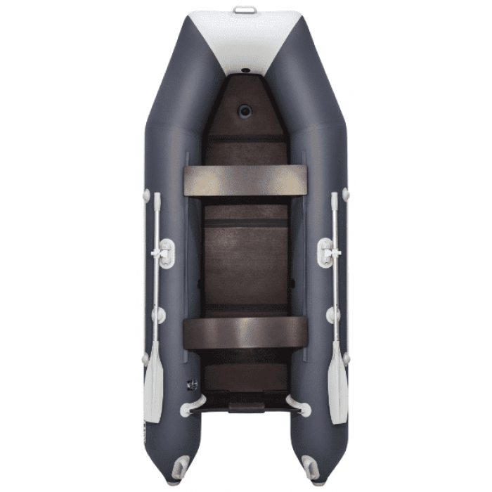 Надувная лодка имеет жестко вклеенный транец из водостойкой многослойной фанеры. Торцы транца защищены пластиковой окантовкой. В месте крепления двигателя предусмотрены дополнительные накладки для уменьшения износа.
