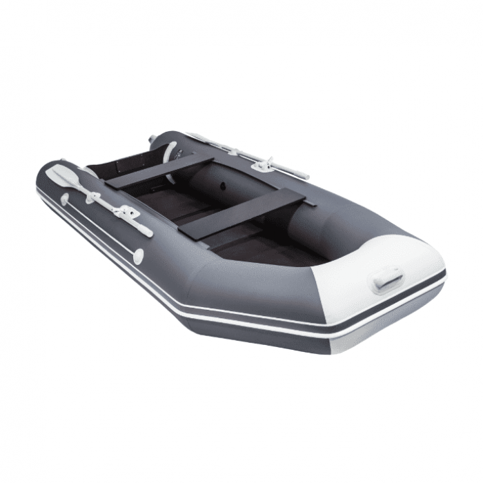 Лодка вмещает 3 человека + снаряжение. Материал лодки устойчив к воздействию горюче-смазочных материалов (бензина, масла), ультрафиолетовых лучей и механических нагрузок. Диаметр баллонов лодки 40 см, 3 герметичных отсека. Лодка имеет натяжное днище.