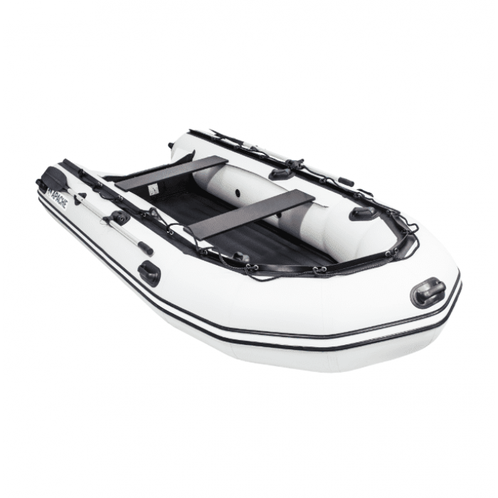 Лодка Apache 3300 НДНД двухместная лодка с надувным дном низкого давления, с усилением кокпита призмой и днища плоским привалом. Серия лодок Apache направлена на увеличение комфортности и универсальность. Кокпит довольно глубокий и оснащен 4-мя ручками за которые удобно держаться при движении. Широкие баллоны 48см способствуют тому что лодка довольно стабильно и уверенно идет по воде. В серии лодок Apache применяется новая форма надувного дна, которая обеспечивает более легкий выход на глиссирование и лучшую управляемость. В носовой части дно килевое, плавно переходящее в гидролыжу к транцу. Семиугольная конструкция носовой части обеспечивает равномерное распределение нагрузки на ткань – повышает эксплуатационные характеристики. Комплектация: