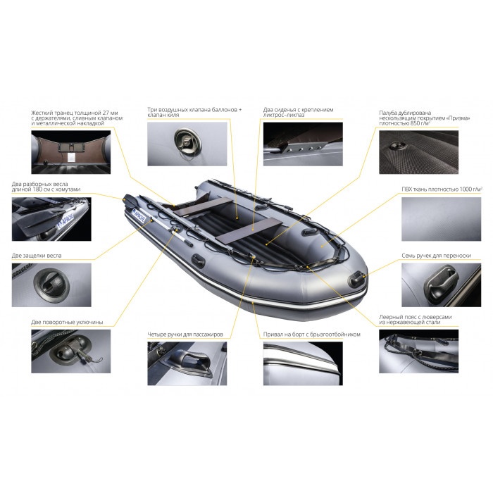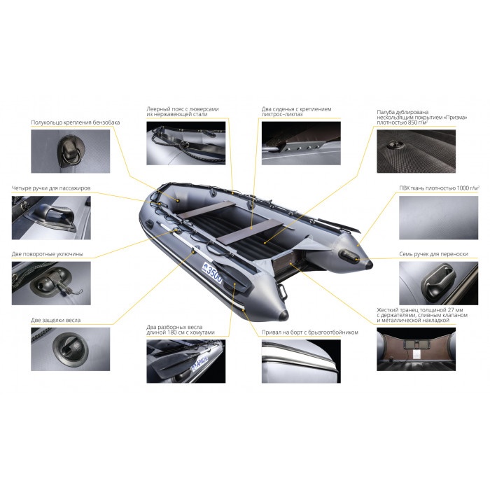 Apache 3500 НДНД - это современная надувная лодка с уникальной конструкцией. Надувное дно низкого давления, имеющее в конструкции килевую переднюю часть и гидролыжу в корме дает легких ход и отличную управляемость. Высокие эксплуатационные характеристики достигаются благодаря семиугольной конструкции носовой части, которая равномерно распределяет нагрузку на ткань.
