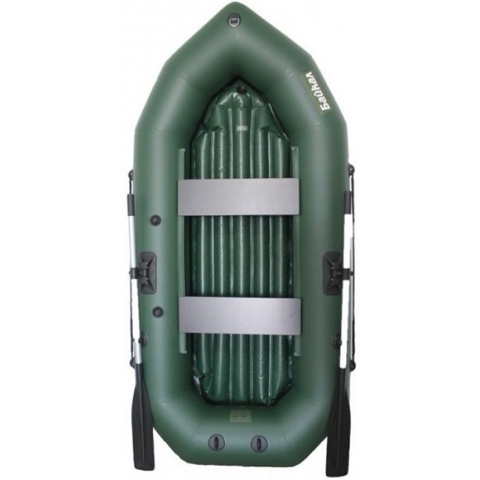 Лодка полностью сварена. Клей используется только для приклеивания фурнитуры. Лодка ПВХ Байкал 260 НД предназначена для рыбалки, охоты и водных прогулок на внутренних водоемах с небольшой высотой волны. Судно имеет грузоподъемность 220 кг. и способно перевозить двух членов экипажа со снаряжением. Лодка относительно легкая и маневренная. Такое судно можно спускать на воду в труднодоступных местах или там, где подъезд к водоему на автомобиле запрещен. Лодка легко переносится, разбирается и собирается. Для того что бы собрать лодку необходимо только накачать баллоны и дно. Экипаж располагается на двух сиденьях из влагостойкой фанеры, которые крепятся с помощью системы ликтрос-ликпаз. Такая система крепления позволяет передвигать банки вдоль кокпита лодки для комфортного положения. Для движения лодки в комплекте прилагаются алюминиевые разборные весла 150 см. с пластиковой фурнитурой. Навесной транец как доп. оборудование позволяет навешивать подвесной лодочный мотор мощностью до 3.5 л.с. Корпус лодки состоит из двух герметичных независимых отсеков плюс надувное дно. Такая конструкция позволяет продержаться на плаву или добраться до берега в случае повреждения обшивки одного из баллонов. Вдоль бортов для безопасности протянуты леера. На носу для буксировки имеется рым. Доступные цвета: Зеленый Дополнительно на эту лодку можно приобрести: Комплект поставки: