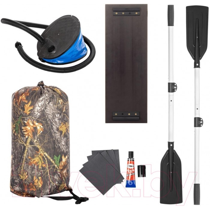 Дополнительная комплектация весло (2 шт.), насос (ножной), ремкомплект, сумка упаковочная, руководство по эксплуатации (паспорт), банка (сиденье) (1 шт.)