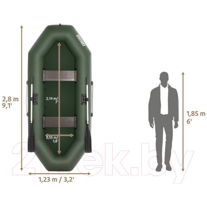 Дополнительная комплектациявесло (2 шт.), насос (5 л.), ремкомплект, сумка упаковочная, руководство по эксплуатации (паспорт), банка (сиденье) (2 шт.)