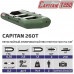 Данная модель лодки по размерам и весу приближена к надувным гребным лодкам, но оснащена стационарным транцем толщиной 14 мм, что позволяет устанавливать мотор мощностью до 4 л.с. Транец гармонично сочетается с общей компоновкой лодки и надежно вклеен в корпус лодки с использованием специального усилителя-фиксатора транца. Лодка обладает легким ходом как под веслами, так и под мотором. Крепление сидений по технологии ликтрос-ликпаз позволяет свободно передвигать банки по длине лодки.