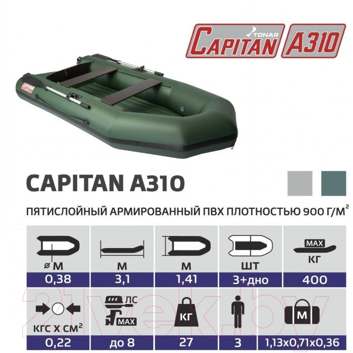 Моторно-гребная лодка с надувным дном низкого давления. Стационарное килевое надувное дно повышает общий объем воздуха в лодке, и, как следствие, повышает плавучесть судна. Благодаря чему, улучшается всхожесть на волну, лодка легко выходит на глиссирование и уверенно держит курс, развивая хорошую скорость. Просторный кокпит лодки и грузоподъемность до 400 кг позволяют комфортно разместиться 3-4 пассажирам и расположить весь необходимый груз. Стационарный транец толщиной 18 мм позволяет использовать мотор до 8 л.с. Рекомендованные районы плавания: прибрежная зона, реки и озера. Крепление сидений ликтрос–ликпаз позволяет регулировать банки в большом диапазоне, что обеспечивает удобство размещения людей и груза в лодке. По бортам лодки размещены ручки для ее переноски. Высококачественные клапана позволяют быстро надуть/сдуть лодку и являются надежной защитой от стравливания воздуха. Благодаря надувному дну низкого давления, лодка имеет малую осадку и отлично подойдет для рек с порогами, водоемов с каменистыми берегами и дном. В сложенном состоянии лодка перевозится в одной упаковочной сумке.