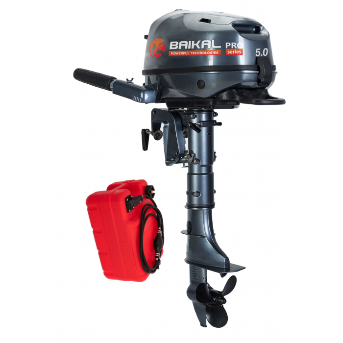 Обновленная версия. Линейка моторов BAIKAL "PRO SERIES" - это увеличенная мощность (6 л.с.), надежность и гарантия комфортного отдыха на воде! Четырехтактный подвесной лодочный мотор BAIKAL изготовленный с использованием японских технологий имеет простую конструкцию, благодаря чему обладает высокой надежностью и простотой в обслуживании. Ручка акселератора находится на румпеле. Очень надежный и экономичный мотор, а по соотношению мощности и расхода топлива обходит многие более дорогие аналоги. Мотор оснащен встроенным баком и коннектором под дополнительный внешний бак. Система водяного охлаждения двигателя эффективно справляется со своей задачей, что позволяет поддерживать высокие обороты двигателя в течении длительного времени без риска перегрева мотора. Скоростные показатели Данный двигатель с 1 человеком на борту позволяет без труда выходить на глиссирование. Для сравнения моторов по скоростному потенциалу в зависимости от мощности, можно примерно оценить развиваемую скорость, учитывая то допущение что средний вес человека 80 кг., а лодка плывет по гладкой воде без течения и в отсутствии ветра. Для данного двигателя будут следующие скоростные показатели: Комплектация: