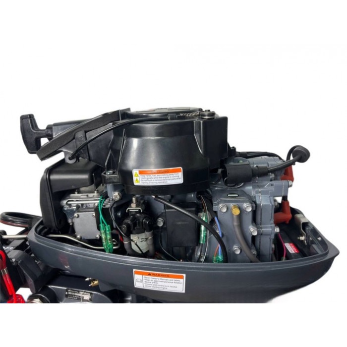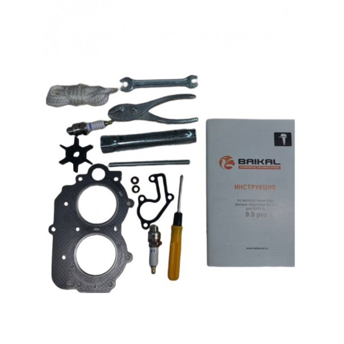 Лодочный мотор BAIKAL 9.9 - двухтактный 2-х цилиндровый, мощностью 9,9 л.с. с дополнительной опцией электростартера. Ручка акселератора находится на румпеле. Данный мотор является дефорсированной версией двигателя BAIKAL 15 и отличается от него модификацией в работе карбюратора и соответственно более высоким ресурсом. Мотор оснащается выносным топливным баком 24 литра, что позволяет совершать длительные прогулки по воде не задумываясь о запасах топлива. Благодаря сбалансированности двигатель имеет низкий уровень шума и поэтому не вызывает аккустического дискомфорта и не распугивает рыбу. Благодаря системе зажигания CDI и стартеру запуск двигателя осуществляется одинаково стабильно и в любых погодных условиях. Система водяного охлаждения двигателя эффективно справляется со своей задачей, что позволяет поддерживать высокие обороты двигателя в течении длительного времени без риска перегрева мотора. Скоростные показатели Данный двигатель с 2 пассажирами на борту уверенно выводит лодку на глиссирование. Для сравнения моторов по скоростному потенциалу в зависимости от мощности, можно примерно оценить развиваемую скорость, учитывая то допущение что средний вес человека 80 кг., а лодка плывет по гладкой воде без течения и в отсутствии ветра. Для данного двигателя будут следующие скоростные показатели: Комплектация: