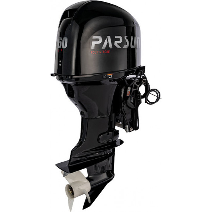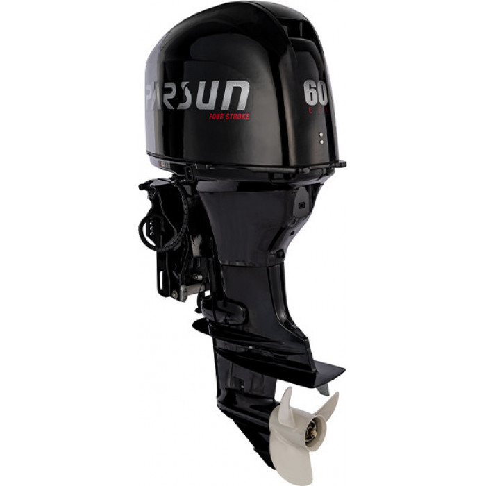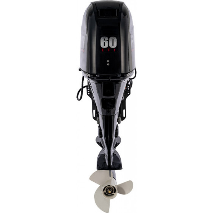 F60FEL-T-EFI — является полным аналогом японского лодочного мотора Yamaha. Все их запчасти взаимозаменяемы, в связи с чем эксплуатация и техническое обслуживание мотора существенно упрощается. Данная модель мотора имеет дистанционное управление, электрозапуск и оборудована системой электрогидравлической откидки и наклона. Мотор предназначен для лодок с высоким транцем – 508 мм. Силовой агрегат F60FEL-T-EFI представляет из себя 4‑х тактный 4‑х цилиндровый двигатель с объемом цилиндров 996 куб. см. На каждый цилиндр приходится по два клапана. Распредвал расположен над головкой блока цилиндров. Такая конфигурация двигателя и ГРМ называется – SOHC. Топливо к впускным клапанам подается инжекторами, которые являются частью инжекторной системы многоточечного впрыска (Multi-Point EFI). Всеми системами двигателя, включая систему электронного впрыска топлива, систему электронного зажигания CDI/TCI и систему предупреждения о неисправностях, управляет микропроцессорный электронный модуль ECM. Он в режиме реального времени опрашивает многочисленные датчики, расположенные в ответственных узлах двигателя, и производит расчет оптимального количества топлива, требуемого для подачи в камеры сгорания. Чтобы снизить вероятность поломки двигателя подвесного мотора F60FEL-T-EFI, система оповещения о неисправностях Engine Alert System своевременно информирует судоводителя о перегреве, снижении давления масла и других неисправностях. Модели моторов, оборудованные системой электрогидравлической откидки/наклона, позволяют точнее настраивать угол наклона на ходу, при преодолении мелководных участков и при причаливании к берегу. Выход на 12 вольт (постоянный ток 12~15 V 25 A ) для подключения ходовых огней; реализации питания эхолота/навигатора, подзарядки мобильного телефона и прочих приборов.