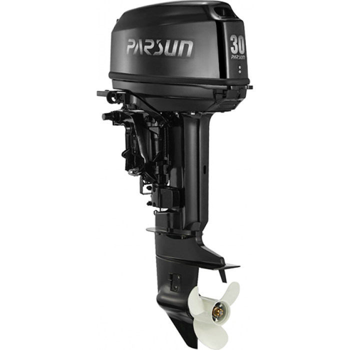 Лодочный мотор T 30 AFWS — Это одна из самых легких версий 30 сильных моторов, всего 55.5 кг. Мотор с дистанционным управлением и электростартером. Также в комплектации присутствует бак на 24 литра. Гарантия 3 года при соблюдении режима обкатки и ТО. Эргономичный и очень мощный 2-тактный двигатель от марки Parsun. Этот агрегат предоставляет своему владельцу высокую мощность, удовлетворительную экономичность и комплексный набор современных систем управления двигателем. Изделия компании представляют собой комбинацию привлекательной цены и отменного качества. Этот мотор станет рациональным решением для тех, кто получить действительно хороший агрегат для своей лодки. Лодочный мотор Т 30 AFWS – двухцилиндровый двигатель с мощностью 30 лошадиных и рабочим объемом 496 см3. Двигатель разработан специально для российских условий и подходит для активной эксплуатации в пресной и морской воде. Лодочный мотор рассчитан под дистанционное управление (с консоли). Запуск двигателя производится вручную или электростартером. Двигатель предназначен для установки на маломерных судах с транцевой высотой 381 мм. Доступен выбор направления движения: Вперед-Нейтраль-Назад. Выход на 12~14,5 V 7 A (постоянный ток) для подключения ходовых огней; реализации питания эхолота/навигатора, подзарядки мобильного телефона и прочих приборов.