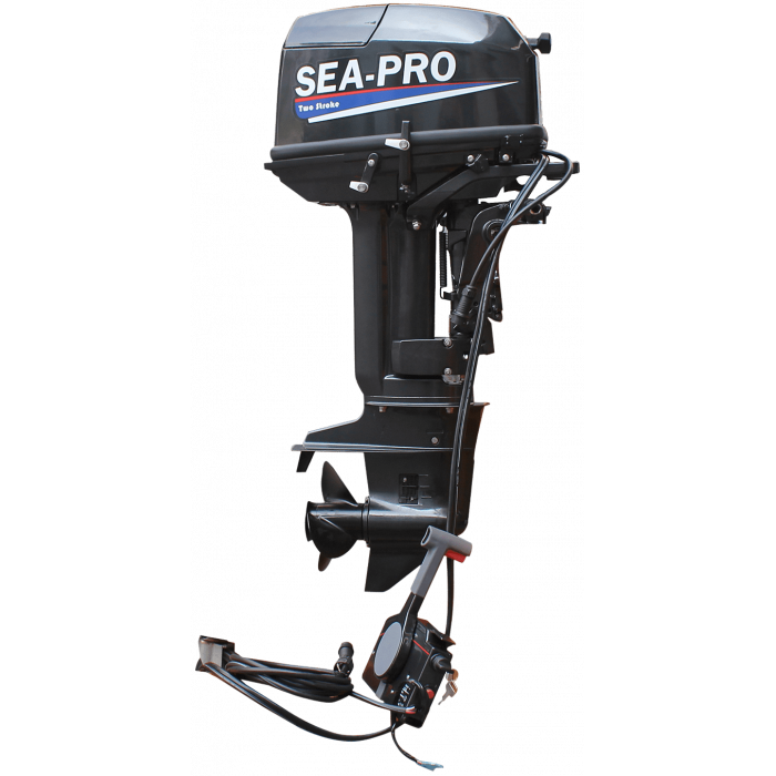 Sea-Pro T 30S&E - двухтактный двухцилиндровый мотор мощностью 30 л.с. с дистанционным управлением, электрозапуском, ручным переводом в мелководный режим, внешним бензобаком на 24 литра; рассчитанный на стандартную высоту транца 381 мм.