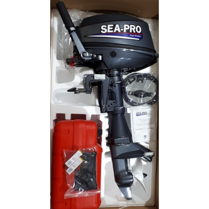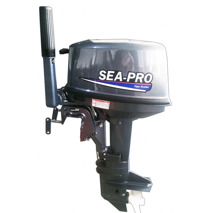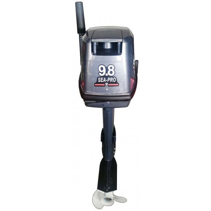 Sea-Pro T 9.8S - двухтактный двухцилиндровый мотор мощностью 9,8 л.с. с румпельным управлением, ручным переводом в мелководный режим, внешним бензобаком на 24 литра, рассчитанный на стандартную высоту транца 381 мм.